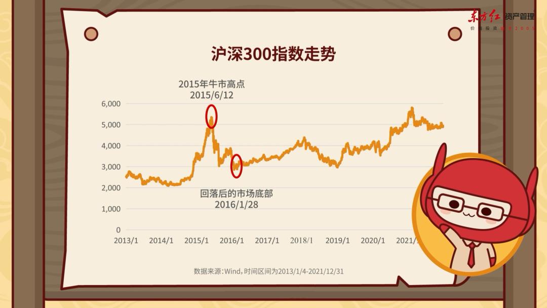 以万得偏股混合型基金指数作为标的,截至2021年底:在牛市高点(2015/6/12)开始的定投,累计收益为79%;而在市场底部(2016/1/28)开始的定投,累计收益为76%,可见两者的收益没有非常大的差别。