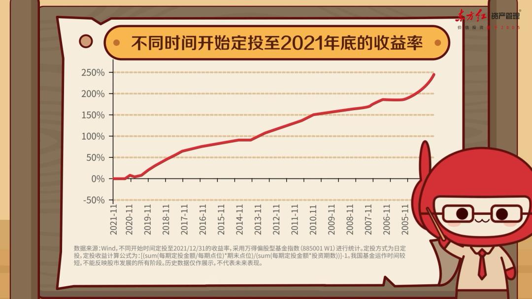 值得注意的是,从“抄底”开始的定投,因为时间相对更短,收益可能还不如牛市最高点开始的定投。